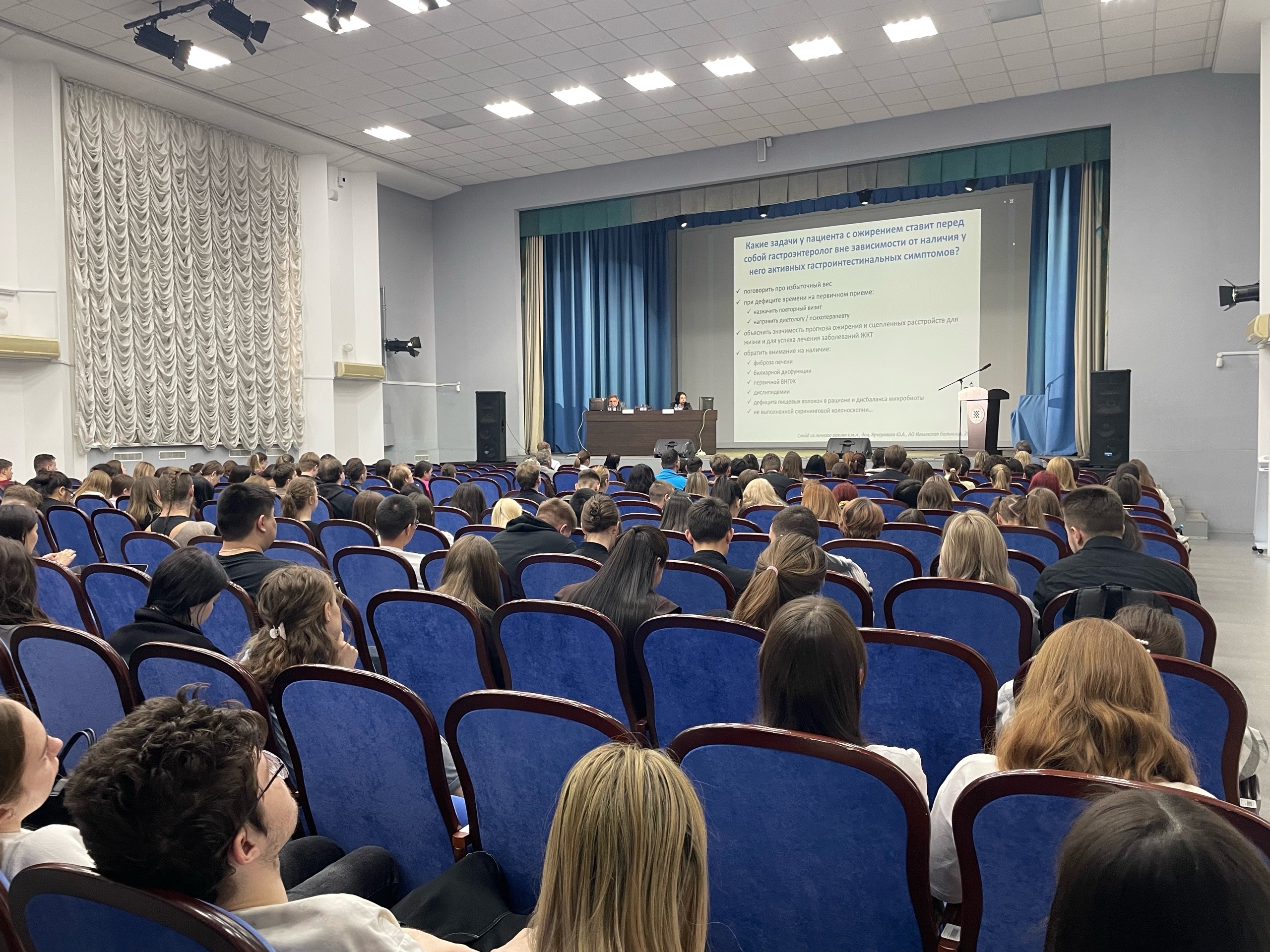 На пленарной части конференции представил свой интереснейший доклад заведующий гастроэнтерологическим отделением «Ильинская больница», кандидат медицинских наук Кучерявый Юрий Александрович (г. Москва), посвященный проблемам ожирения. Далее в течение дня работали секции «Актуальные проблемы и современные достижения хирургии, онкологии и ортопедии», «Актуальные вопросы в практике внутренних болезней», «Актуальные вопросы лучевой диагностики»