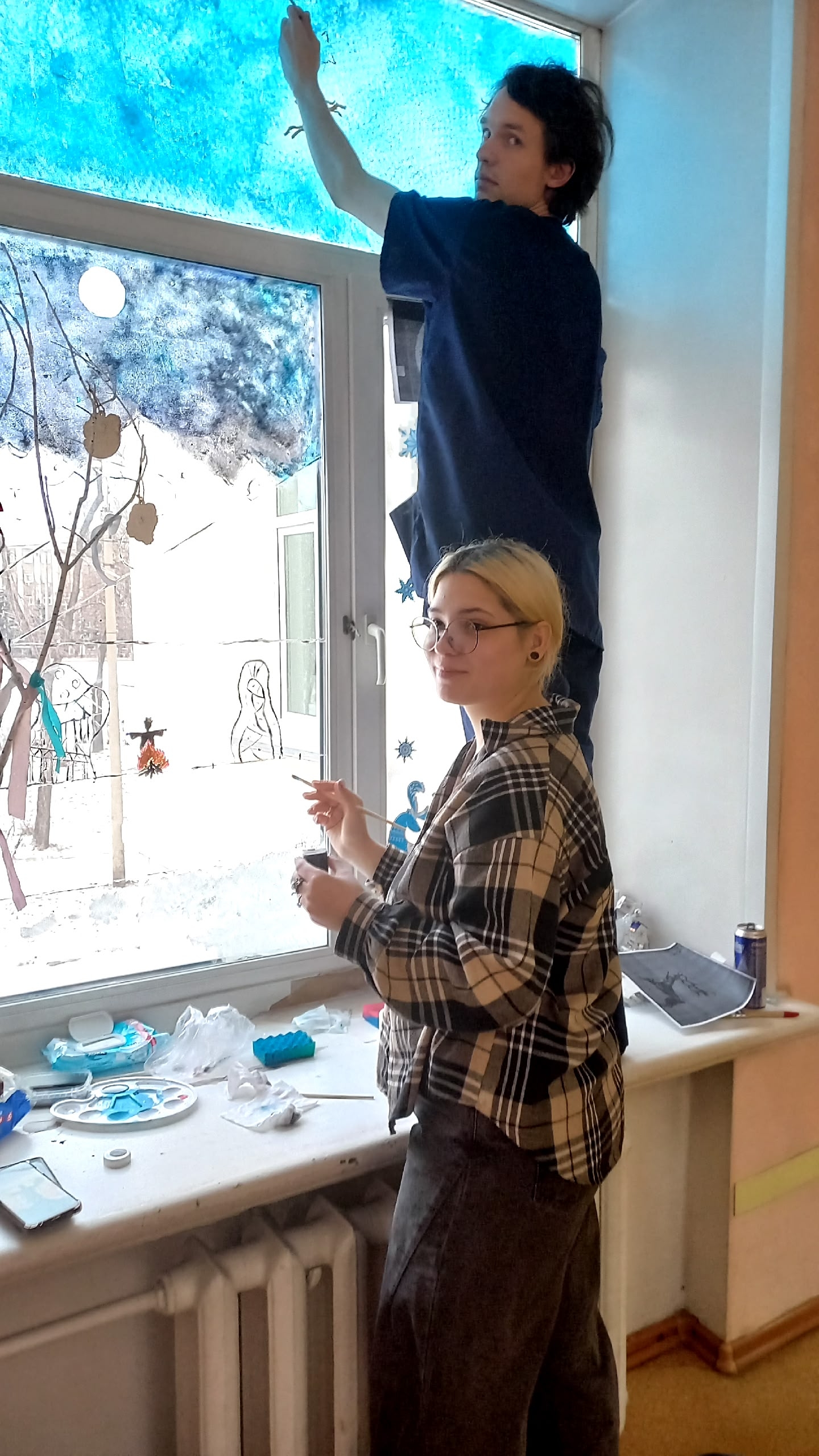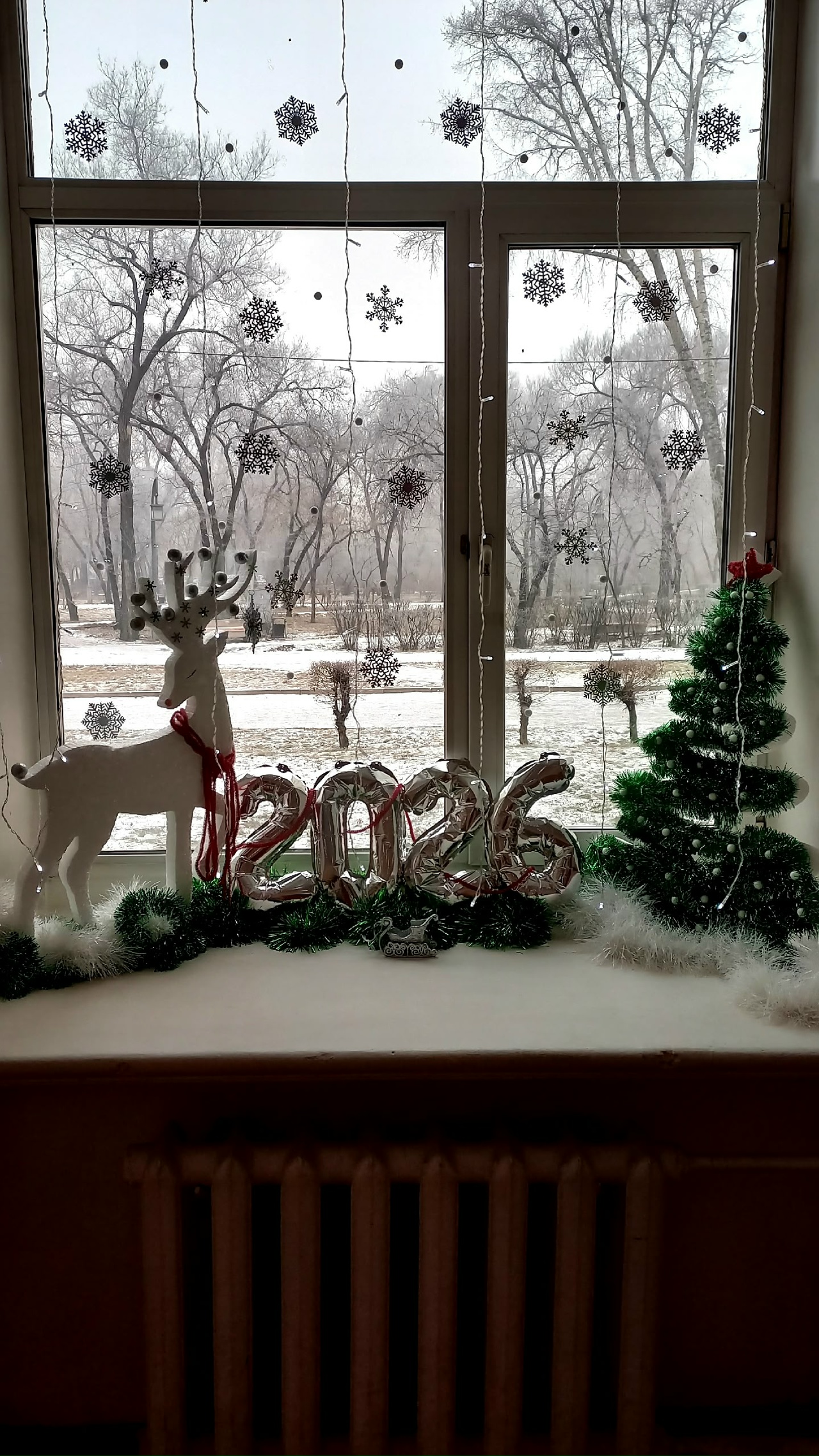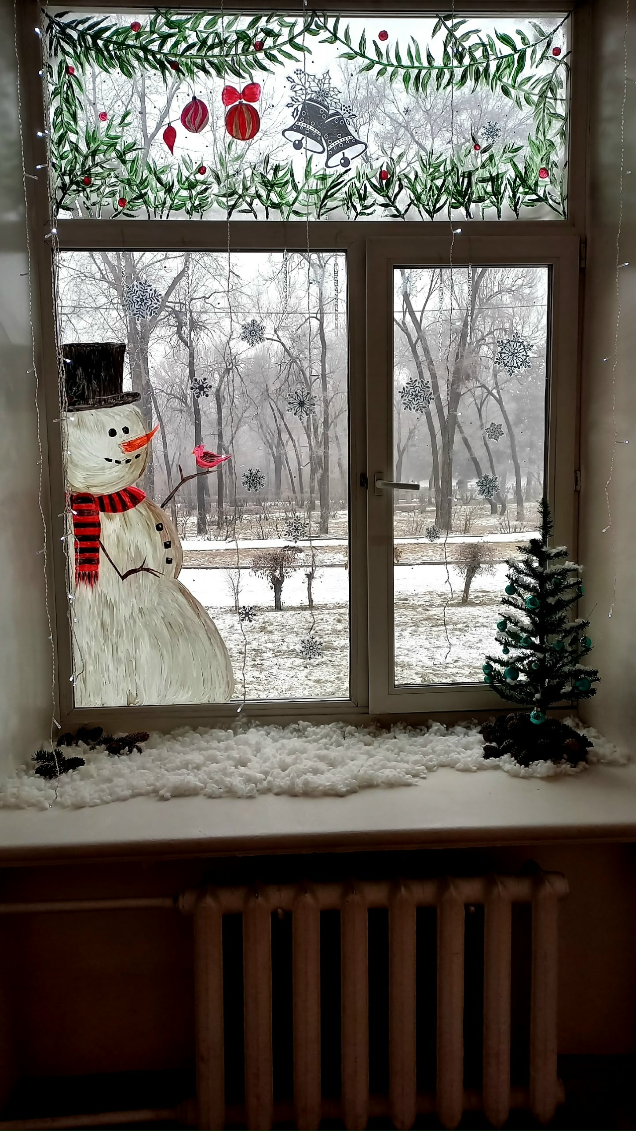 Но самое волшебное начинается, когда идешь по коридорам… Это надо видеть! Каждая группа превратила своё окно в маленькую новогоднюю историю!