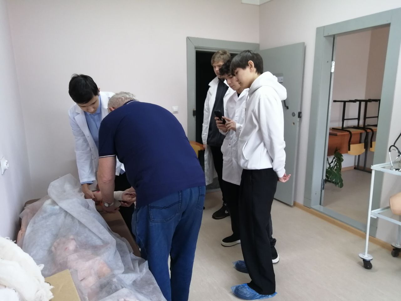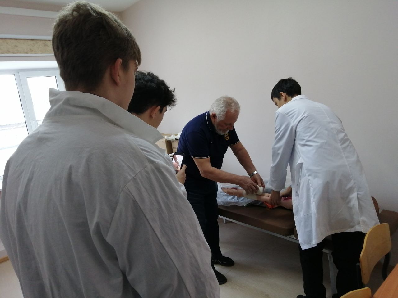 Искусство наложения бинтовых повязок требует большой сноровки и умения, так как при неумелом наложении не только не достигается предположенная цель, но можно причинить больному большой вред. Так, например, неправильно наложенная давящая повязка может вызвать отек и даже омертвение нижележащей части. На занятии школьникам были объяснены основные принципы наложения различных видов повязок и показан алгоритм их выполнения. После этого ученики смогли самостоятельно потренироваться. Мастер-класс проводился главным специалистом Центра ординатуры, переподготовки и аккредитации Медицинского института канд. мед. наук Корниенко П.М.