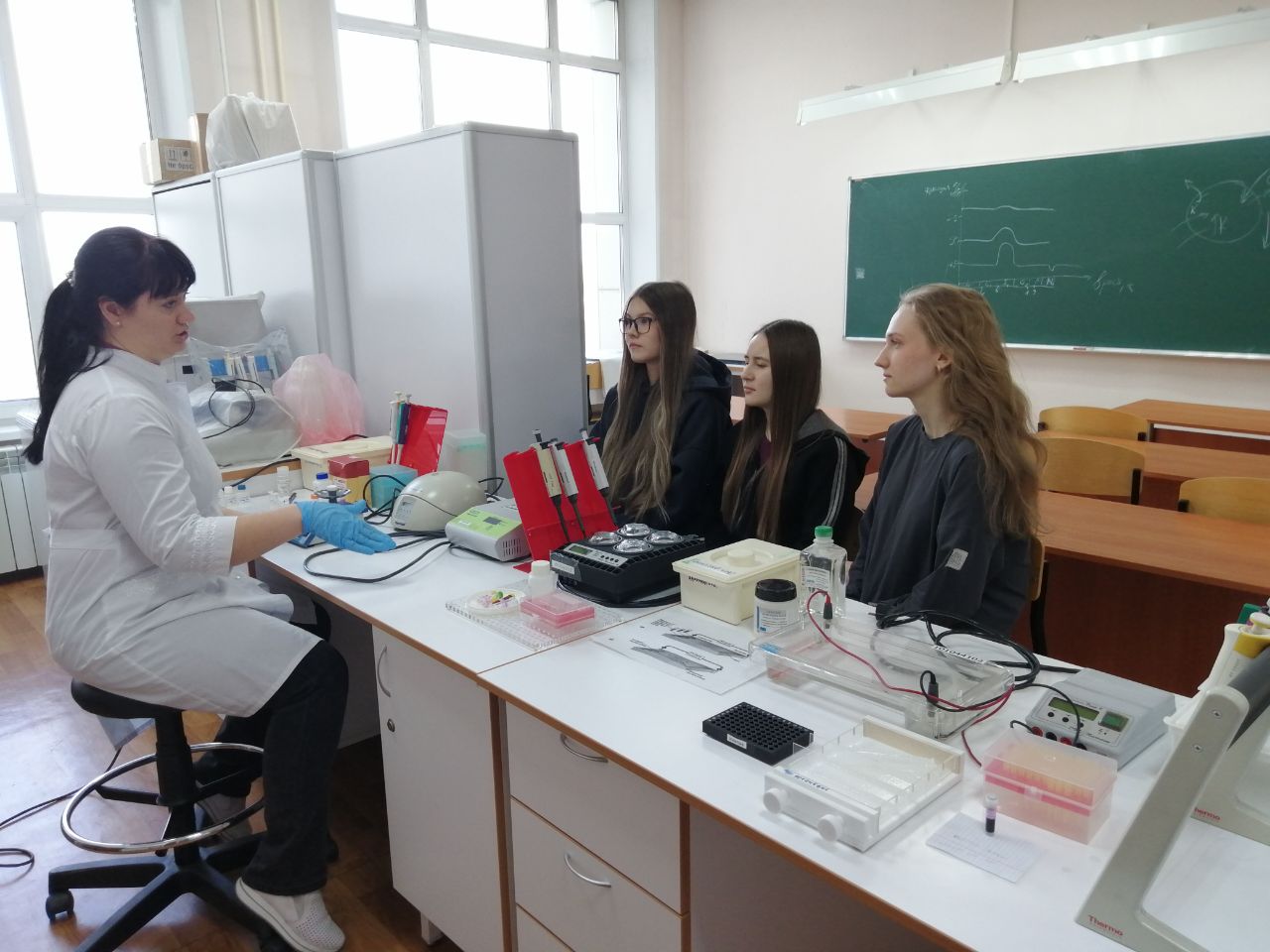 На мастер-классе ученикам рассказали о принципах постановки ПЦР-анализа, его стадиях, особенностях подготовки исследуемых образцов. Также было показано оборудование для проведения ПЦР–анализа в геле и в режиме реального времени. Школьники самостоятельно попробовали провести выделение ДНК из биологического материала, внесение исследуемых образцов в лунки гелевой пластинки, а также расшифровать демонстрационные результаты ПЦР –анализа в геле.